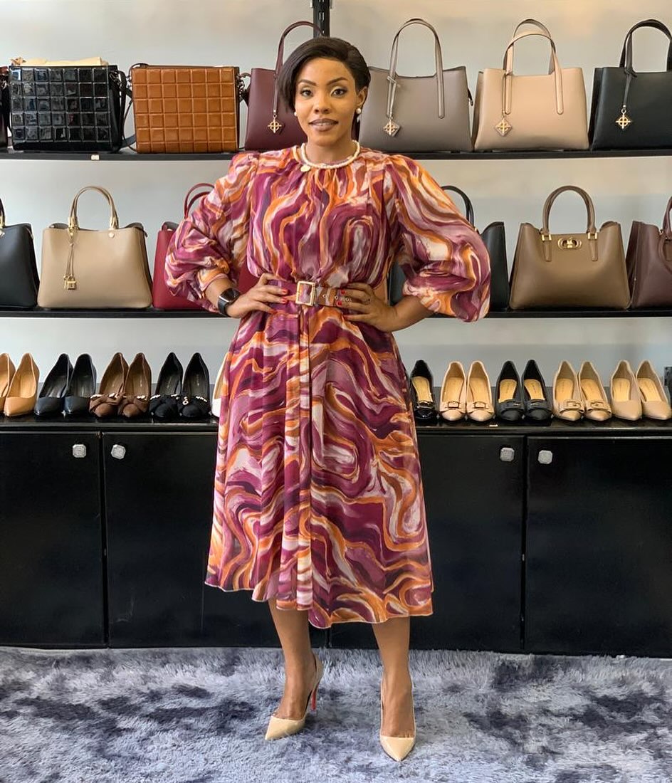 The multicolored marbled pattern dress is vibrant and stylish, offering a bold statement for any occasion while ensuring comfort and elegance.